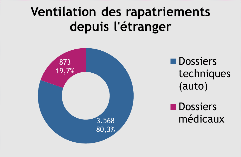 Le plus souvent (9 fois sur 10), il s’agissait d’une panne de voiture ou d’un accident de la circulation. Une assistance médicale a toutefois également été nécessaire pour près de 12.000 vacanciers ayant subi des blessures graves ou étant tombés gravement malades en voyage, souvent loin de la maison. On dénombre 873 rapatriements de l’étranger pour raisons médicales.