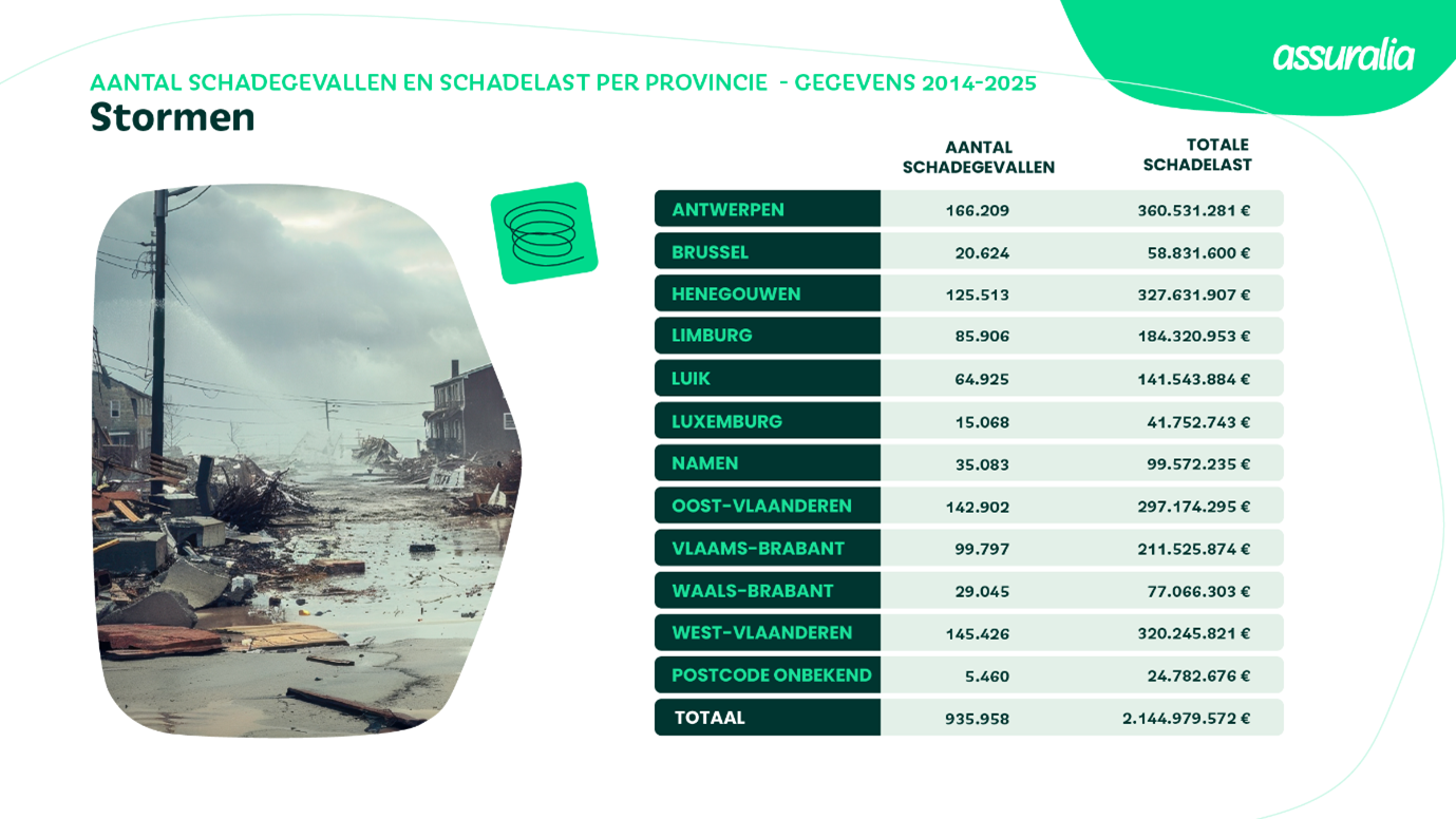 “De Klimaatschademonitor” van de verzekeraars, een interactieve tool die het voor iedereen mogelijk maakt om de klimaatschade per gemeente te raadplegen, werd aangepast met de data van 2025. Sinds 2015 betaalden de verzekeraars meer dan 5 miljard euro aan schade uit door stormen en overstromingen.
